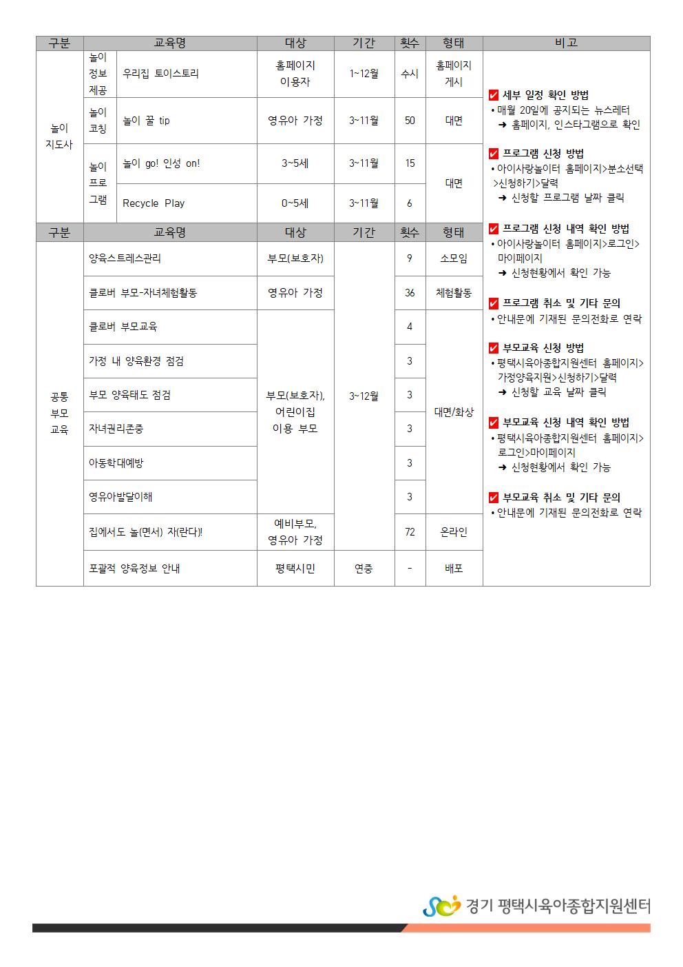 | [평택시육아종합지원센터] 2024년 가정양육지원사업 연간 계획 안내 | |||||