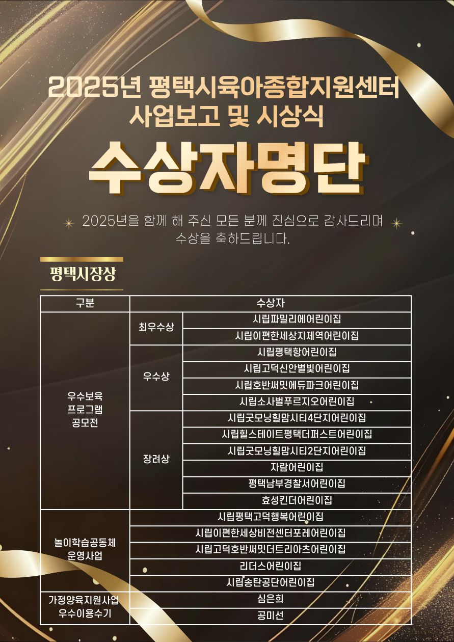 2025년 평택시육아종합지원센터 시상식 수상자 명단