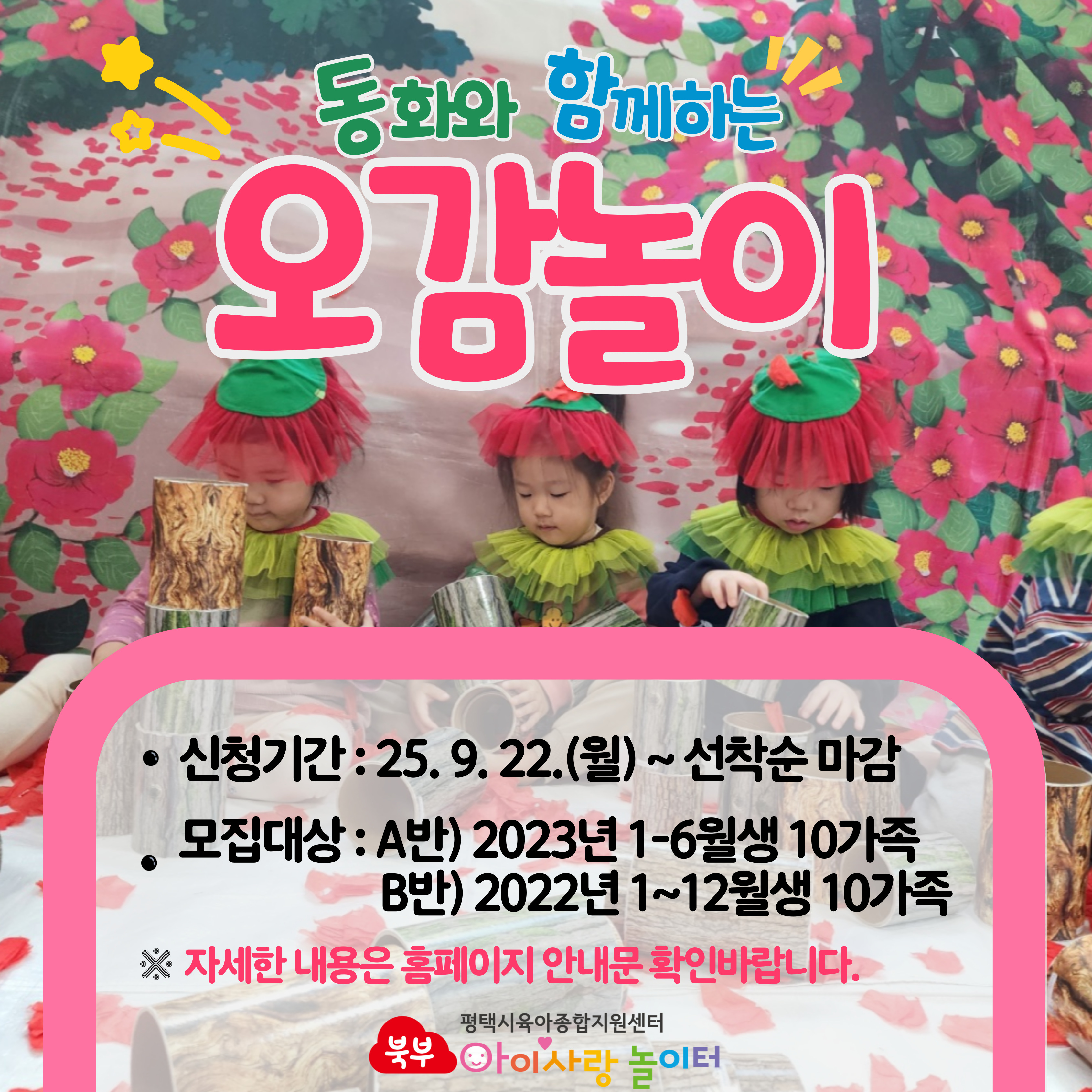 | *9. 22.(월)신청*[오/소] 2022년생 동화책&오감놀이(2025년 10~11월 진행) | |||||