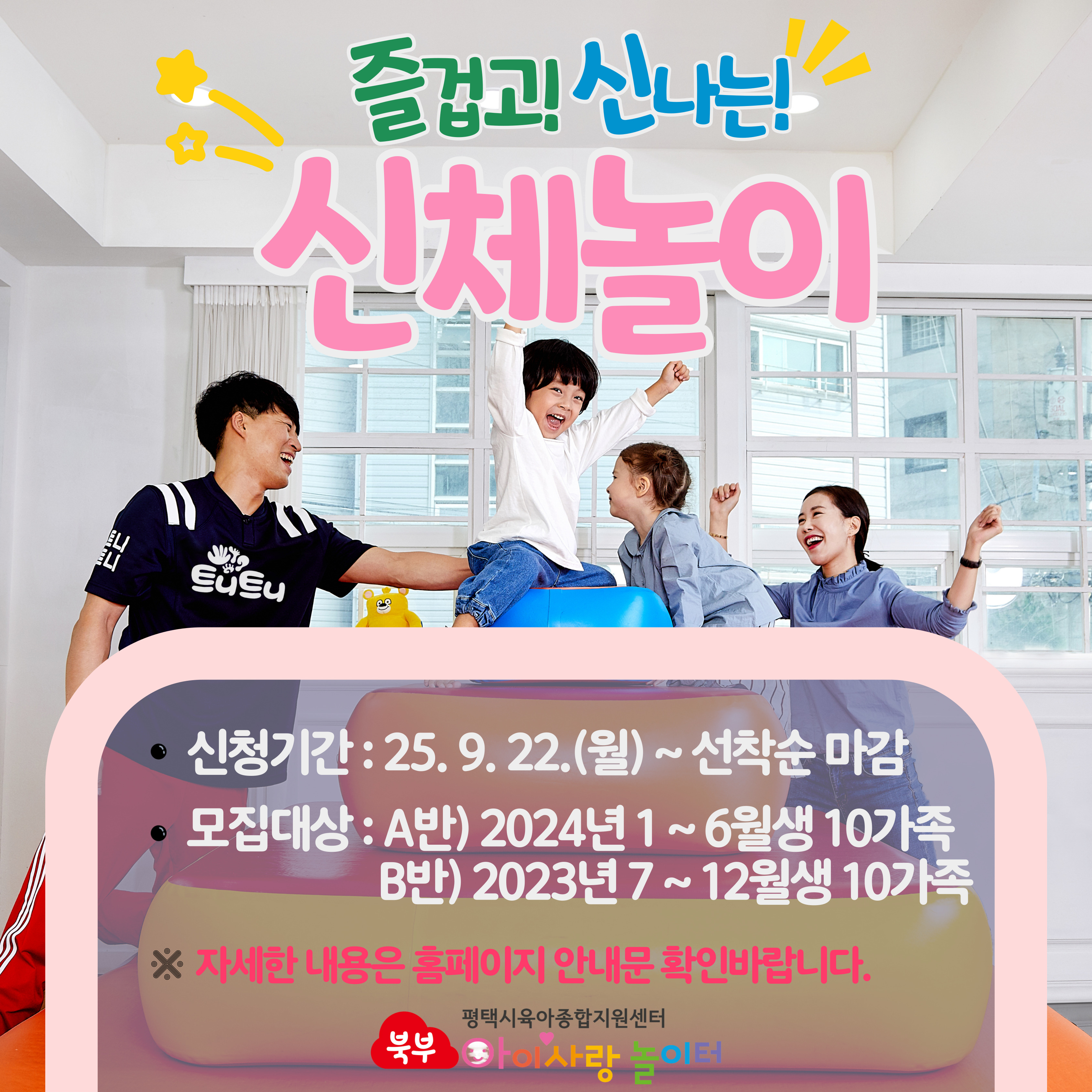 | *9. 22.(수)신청*[오/소] 2023년 7~12월생, 2024년 1월~6월생 트니트니 신체놀이(2025년 10~11월 진행) | |||||