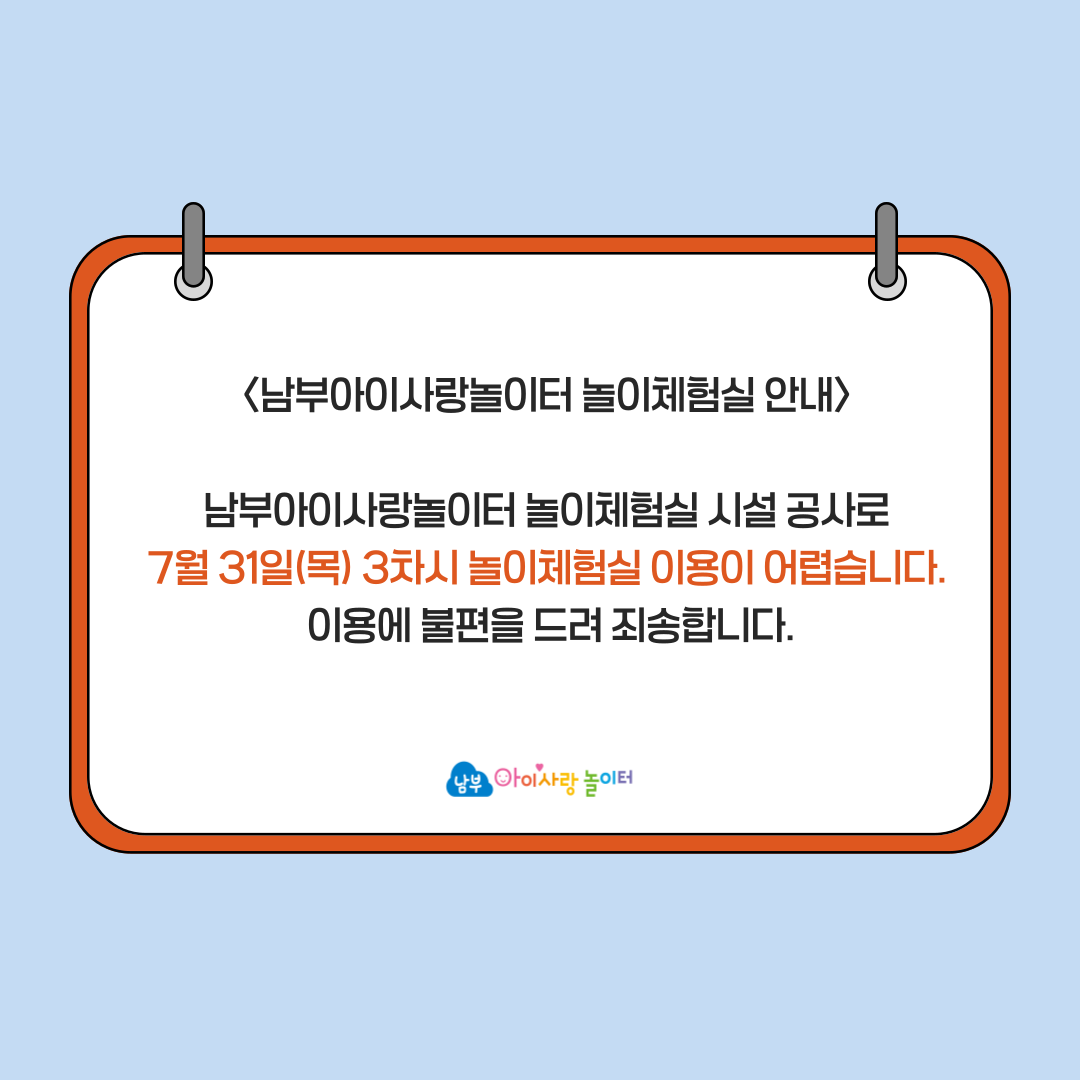 [남부아이사랑놀이터] 놀이체험실 이용 안내 (7월 31일 3차시)