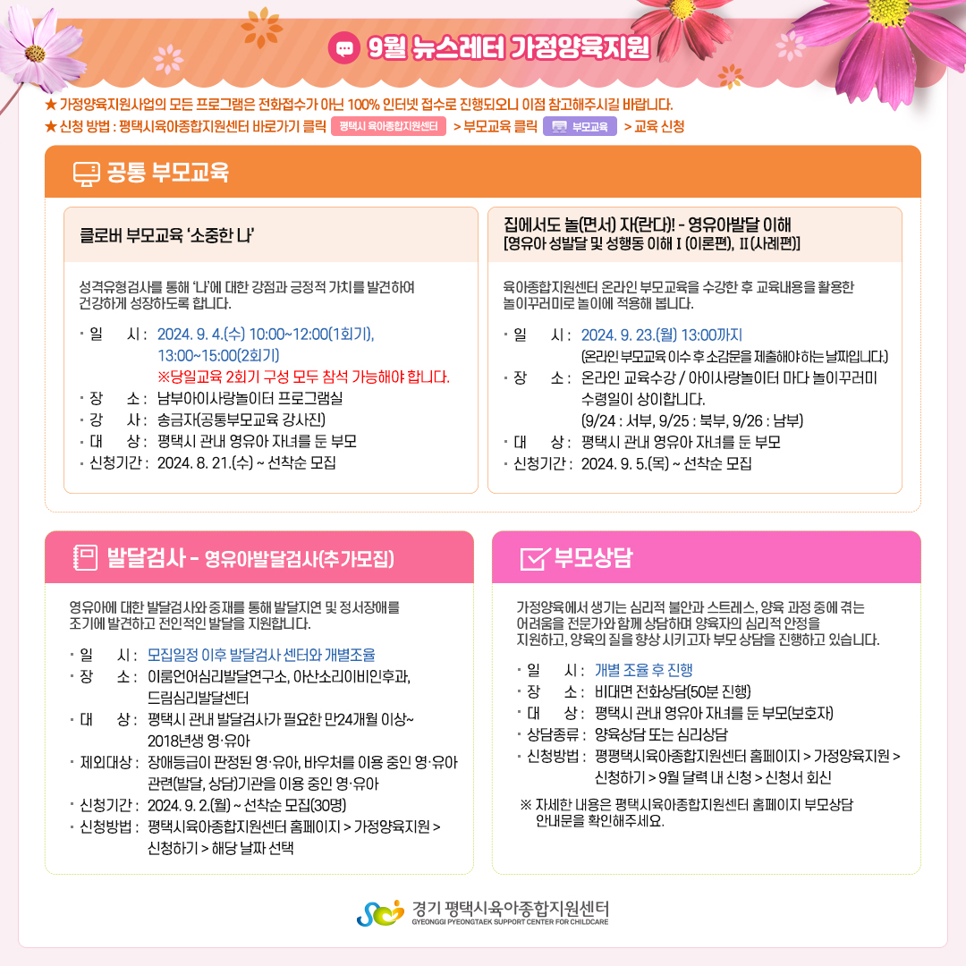 2024년 9월 가정양육지원사업 뉴스레터입니다. 업무에 참고해주시기 바랍니다