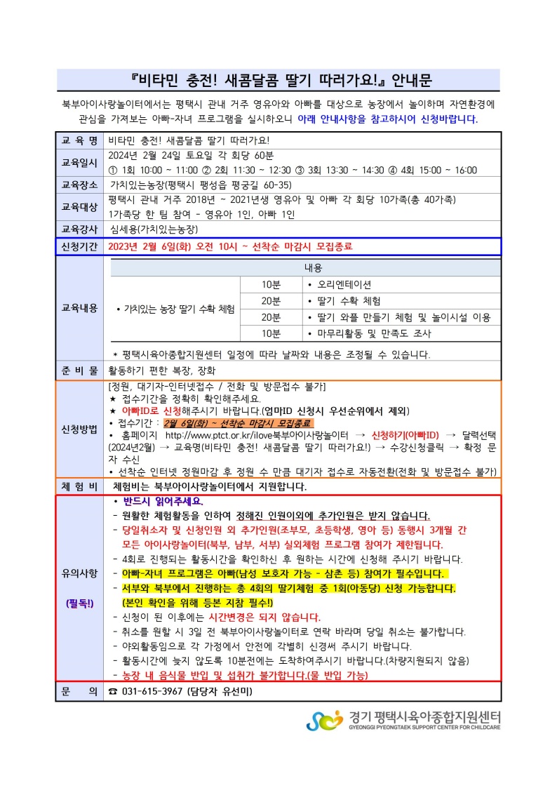 *2월 6일 신청*[오/소] 아빠와 함께하는 생태체험(평택농장탐방) A반(2. 24.(토) 체험)