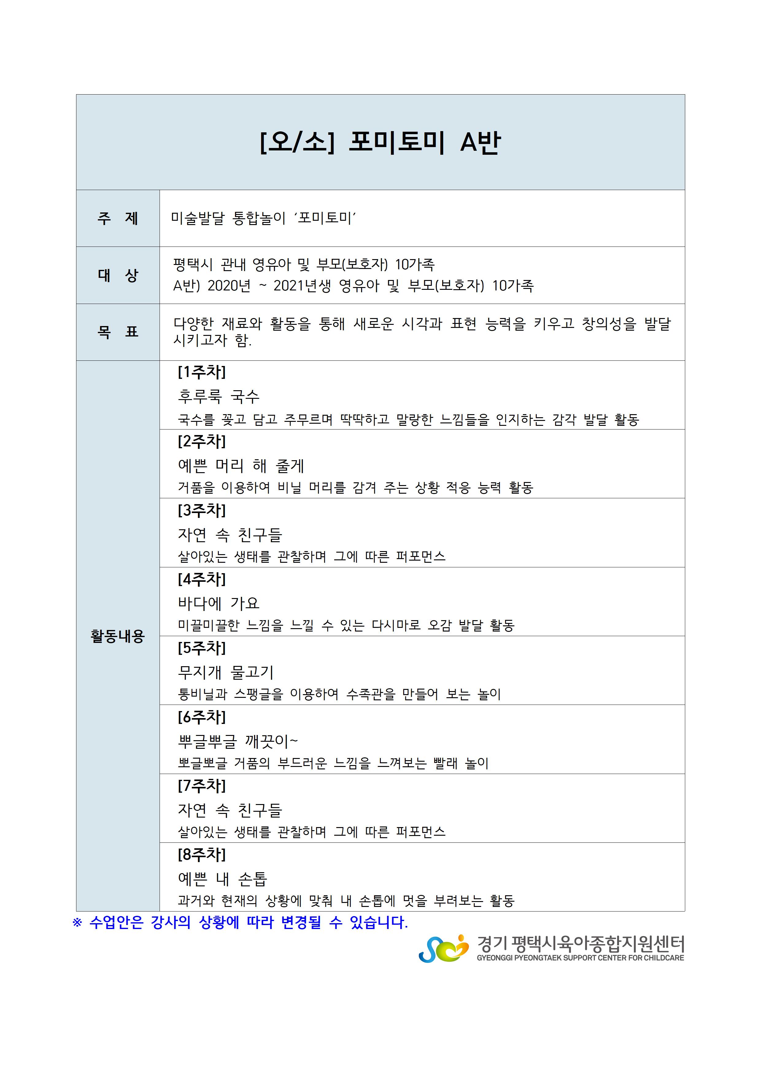 *6. 19.(수)신청*[오/소] 2020년 ~2021년생 포미토미 A반