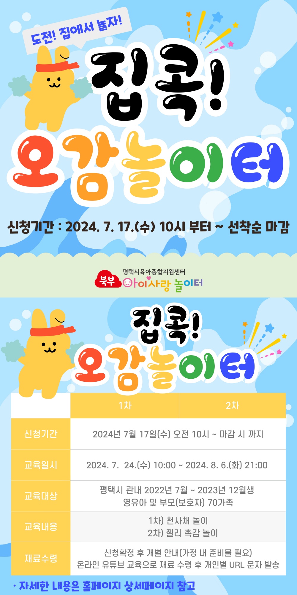 | *7. 17.(수) 신청* [온/유] 집콕! 오감놀이터! | |||