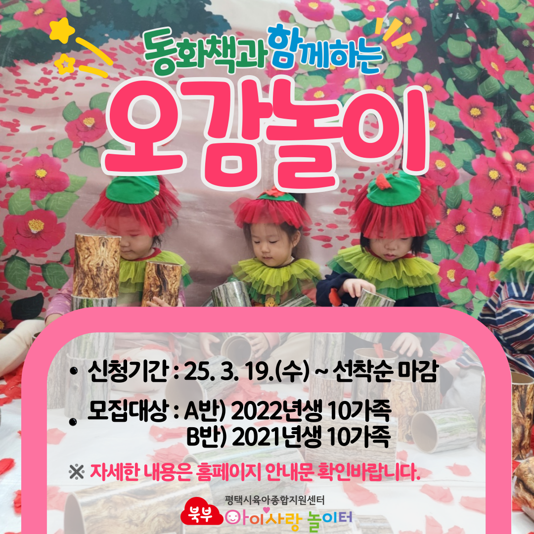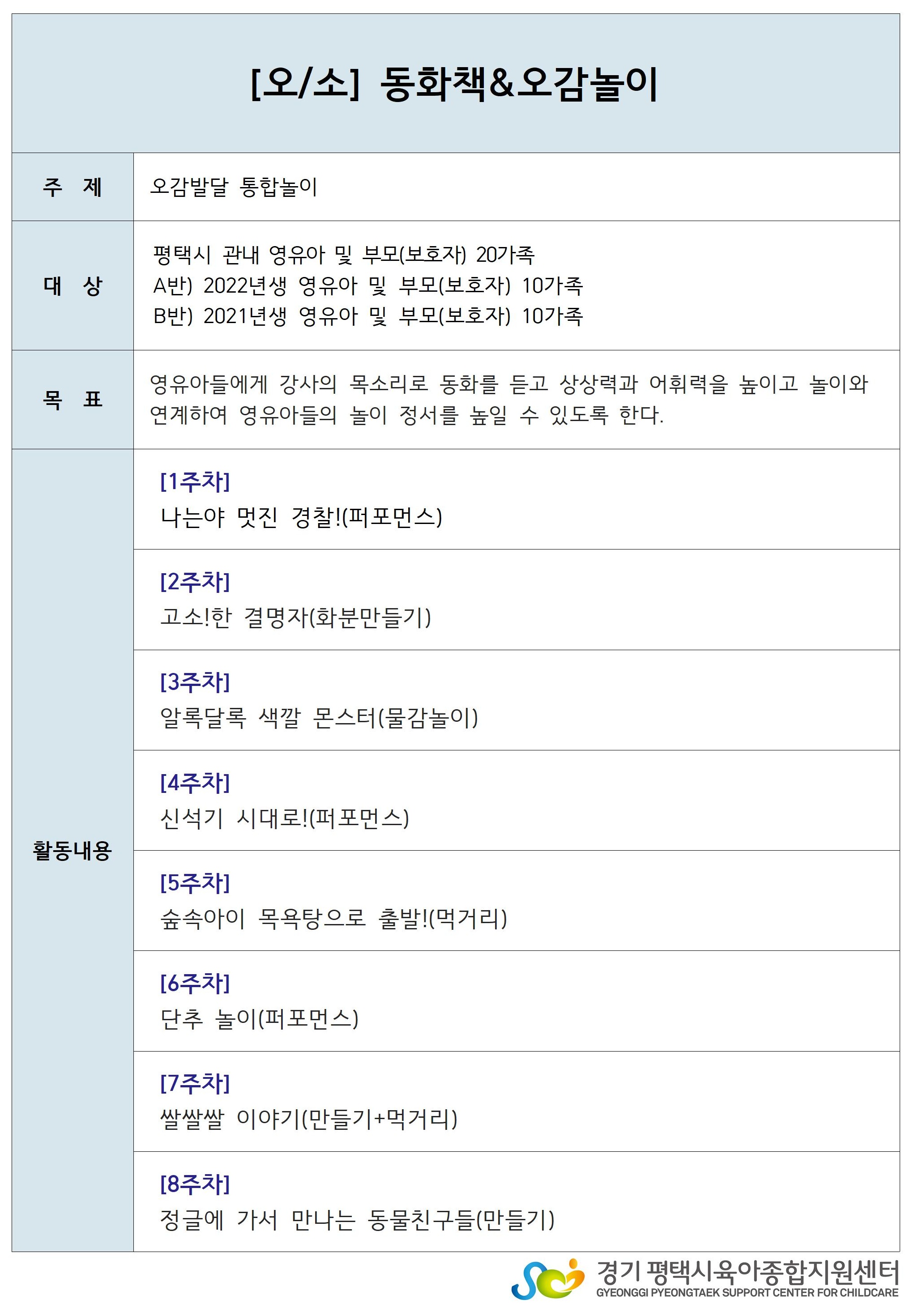 | *3. 19.(수)신청*[오/소] 2022년생 동화책&오감놀이 A반 | |||