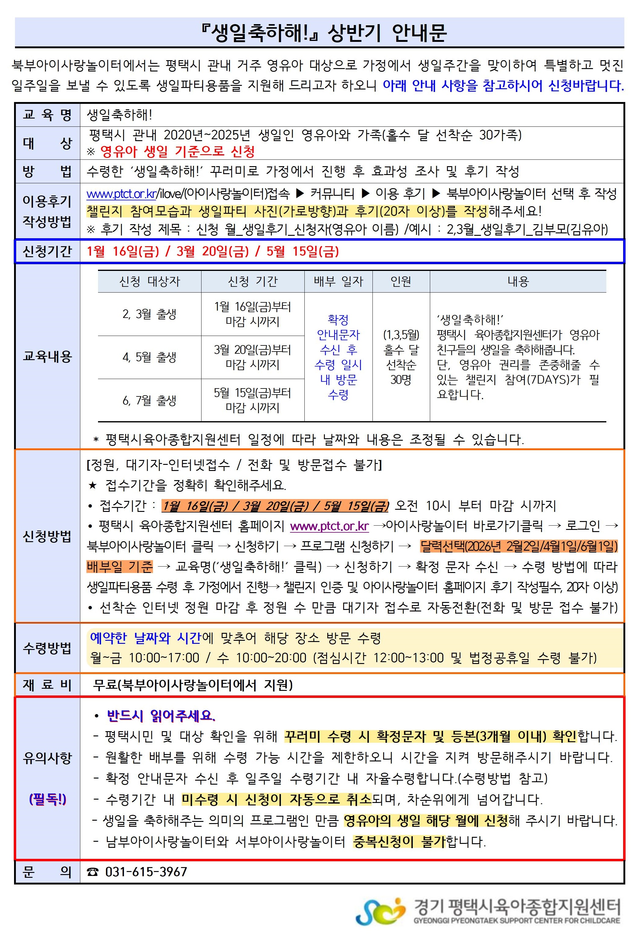 접수대상 2, 3월 생일을 맞이하는 영유아 가족