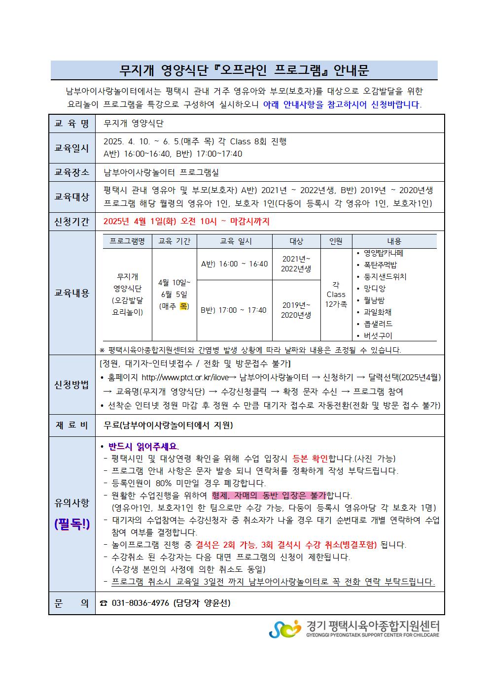 *4. 1.(화)신청*[오/소] 2019년~2020년생 무지개 영양식단 B반