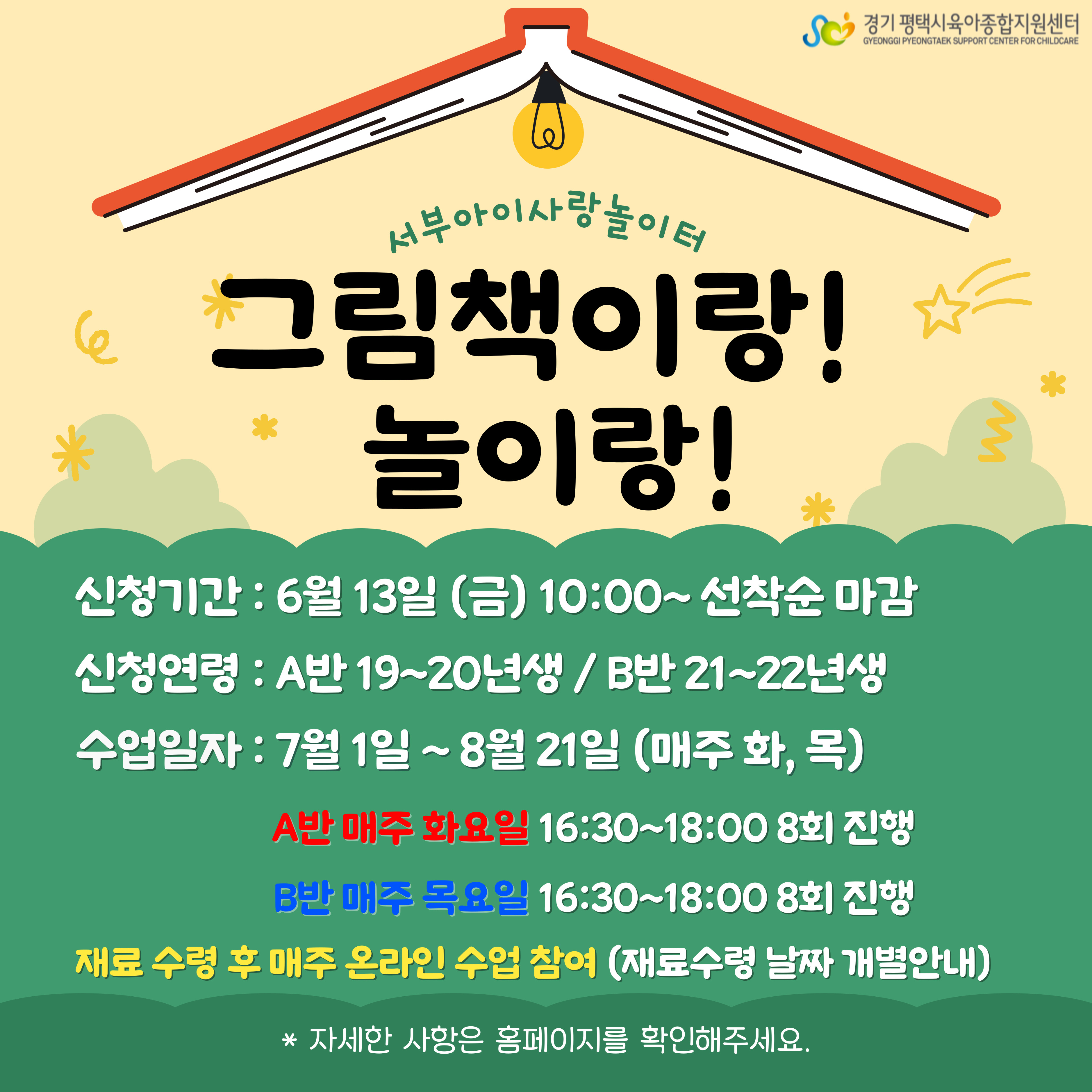 | *6.13.(금) 신청* 2021년~2022년생 그림책으로 놀아요 (B팀) | |||