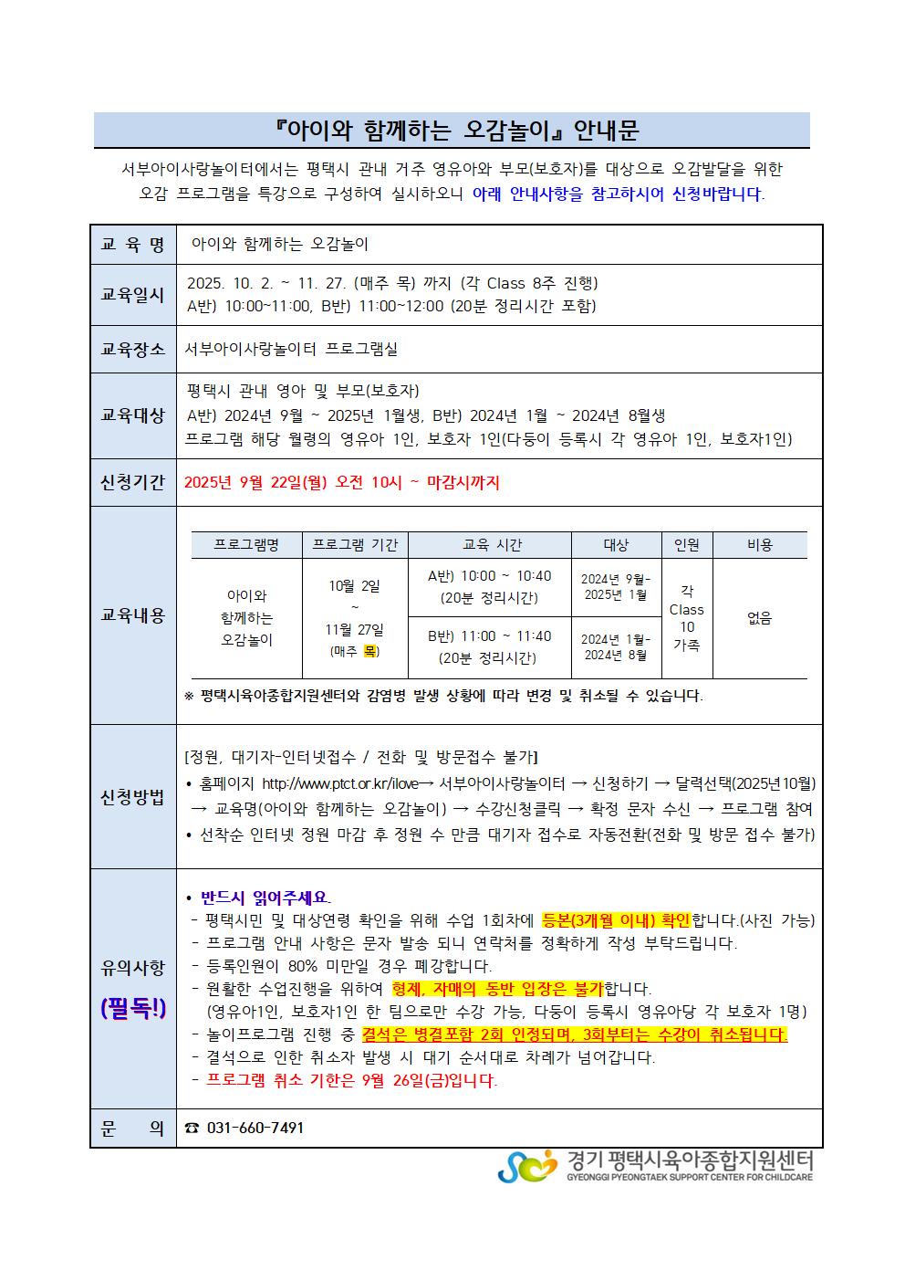 | *9.22.(월) 신청* 아이와 함께하는 오감놀이 B팀 | |||
