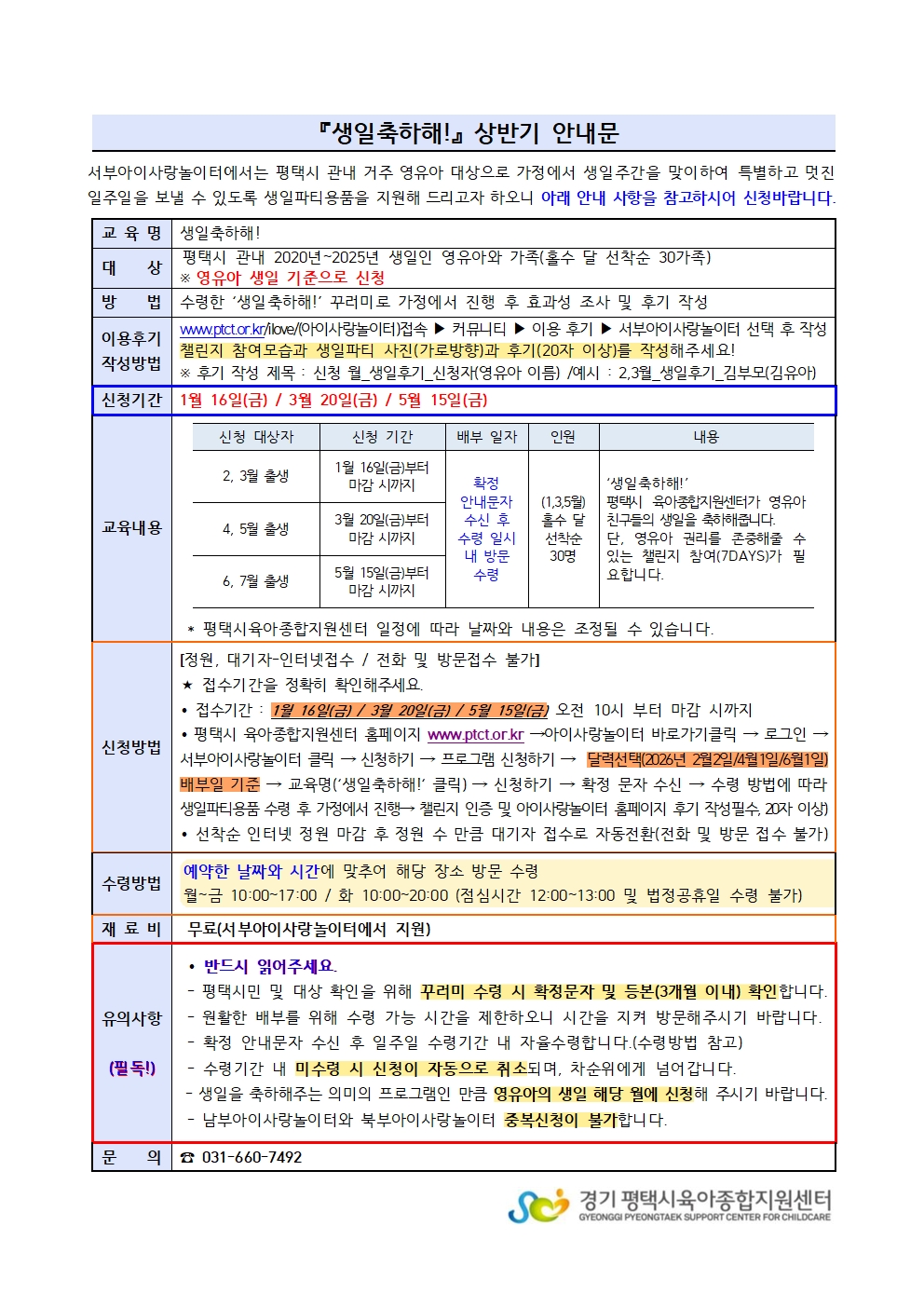접수대상 4, 5월 생일을 맞이하는 영유아 가족