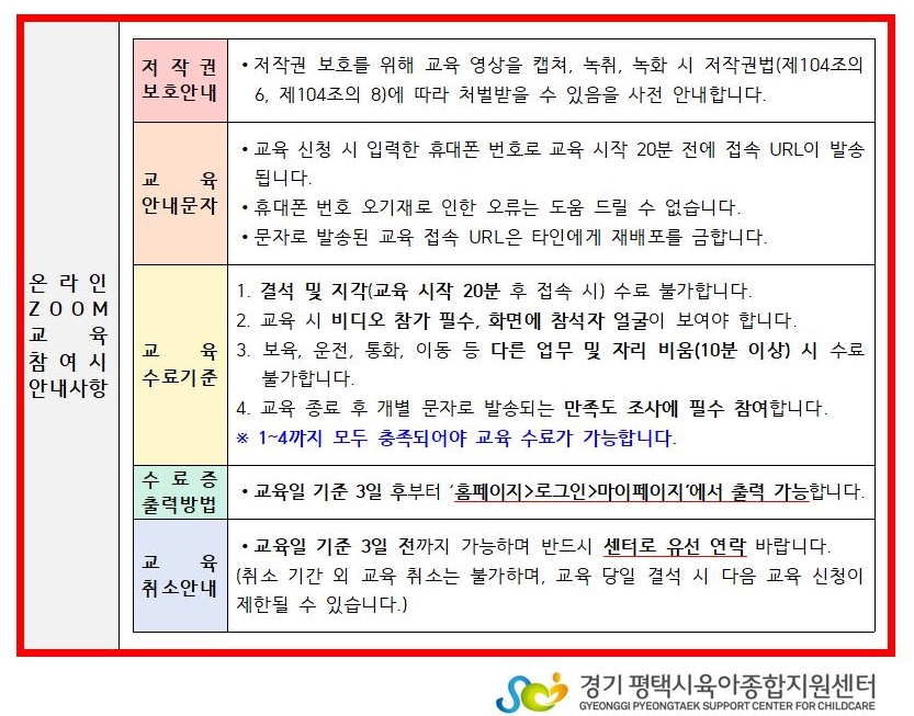 교육장소 온라인 zoom 교육비 무료