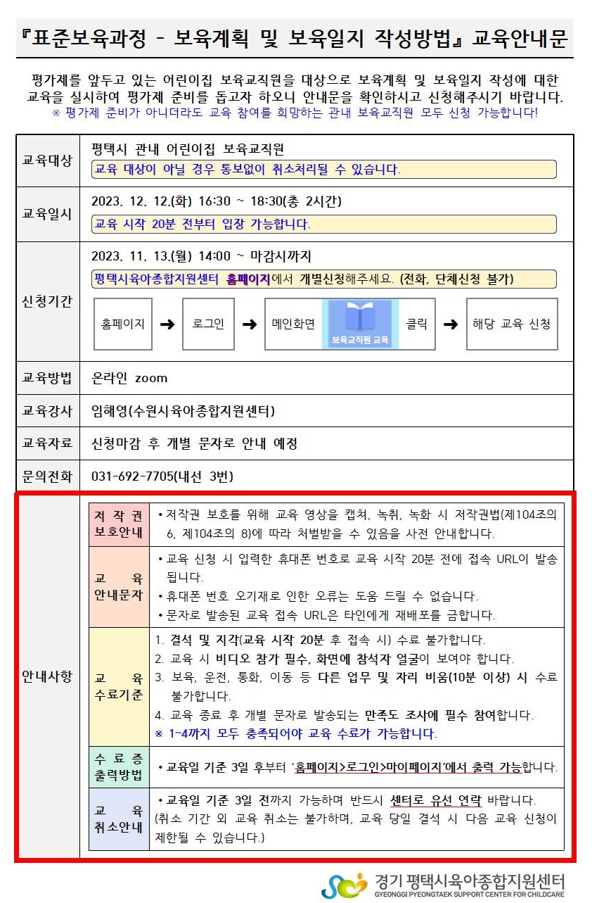 교육대상 평택시 관내 어린이집 보육교직원 강사명 임해영(수원시육아종합지원센터)