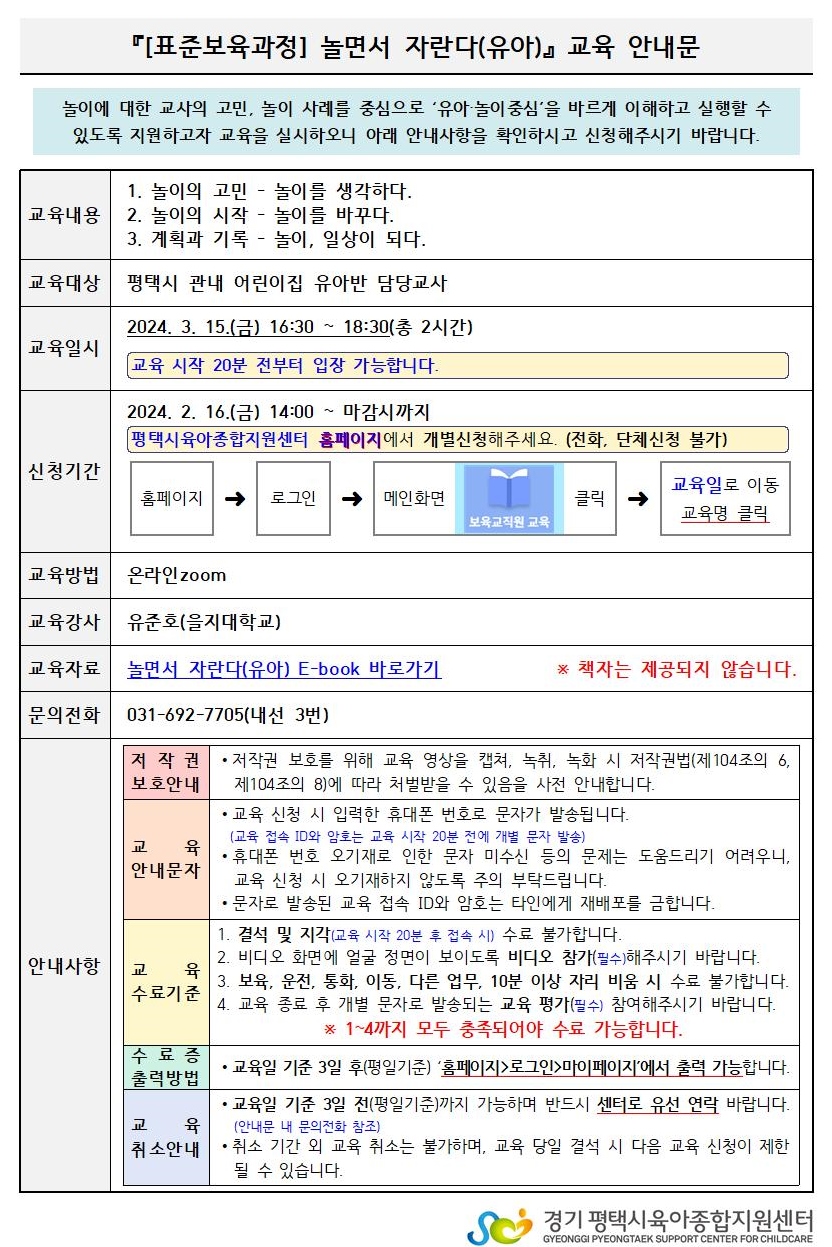 교육명 [표준보육과정] 놀면서 자란다(유아) 교육형태 온라인 zoom