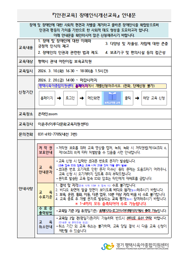 교육명 [안전교육] 장애인식개선교육 교육형태 온라인 zoom