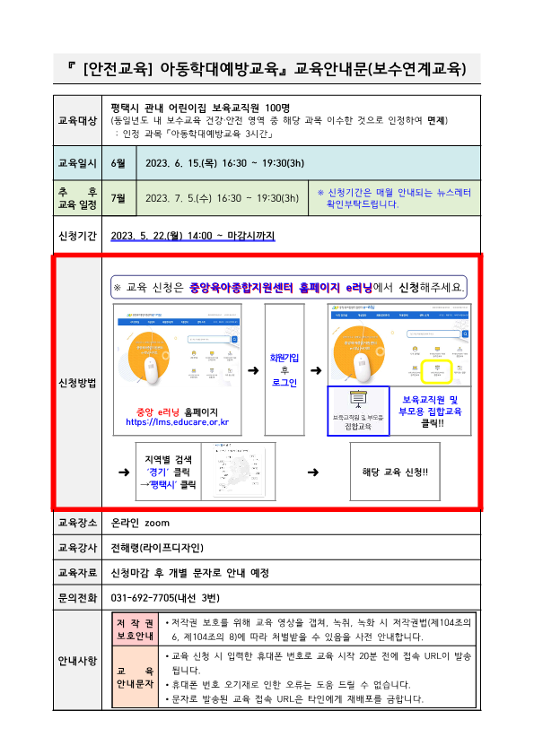 ※ 교육 신청 바로가기(중앙 E-러닝): https://lms.educare.or.kr/lms/intro.edu