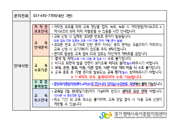 중앙 E-러닝>회원가입 및 로그인>보육교직원용 집합교육>'경기-평택시' 설정