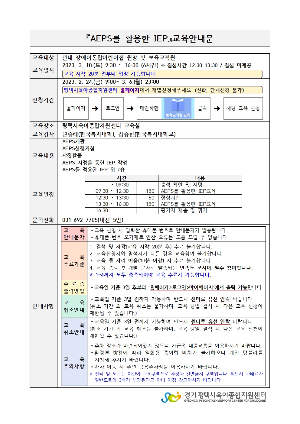첨부파일 파일 [2023.3.18.교육안내문(대면)] AEPS를 활용한 IEP교육001.jpg