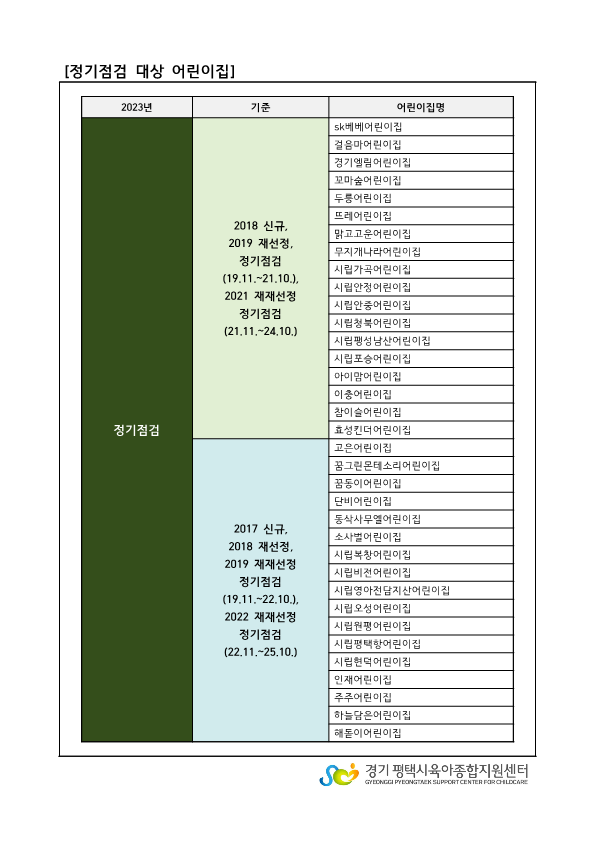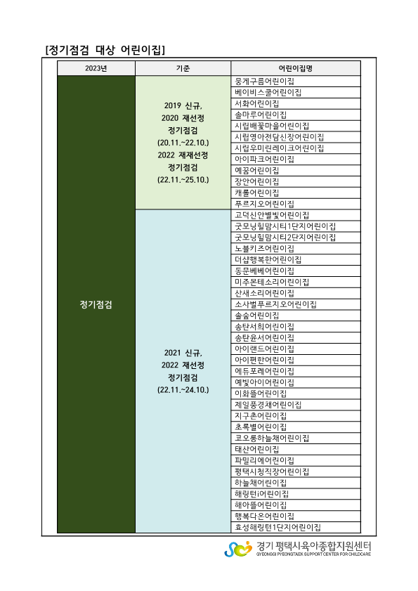 기타사항 ※ 정기점검 대상 어린이집은 아래의 어린이집 목록을 확인바랍니다.