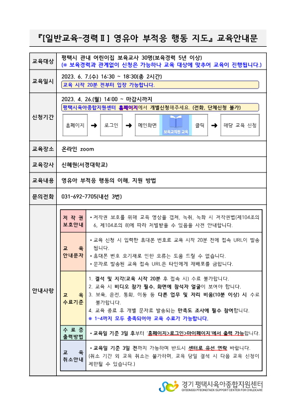 교육명 [일반교육-경력] 영유아 부적응 행동 지원 교육형태 온라인 zoom