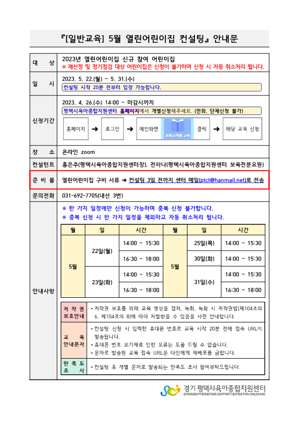 첨부파일 파일 [일반교육] 5월 열린어린이집 컨설팅 안내문_1.png