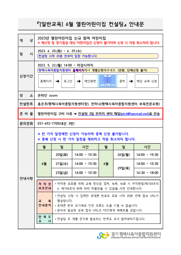 첨부파일 파일 [일반교육] 6월 열린어린이집 컨설팅 안내문_1.png