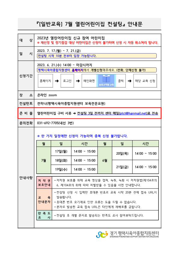 첨부파일 파일 [일반교육] 7월 열린어린이집 컨설팅 안내문_1.png