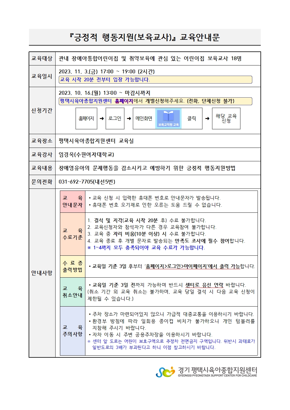 교육명 [취약보육] (보육교사대상)긍정적 행동지원 교육 교육형태 오프라인 소규모
