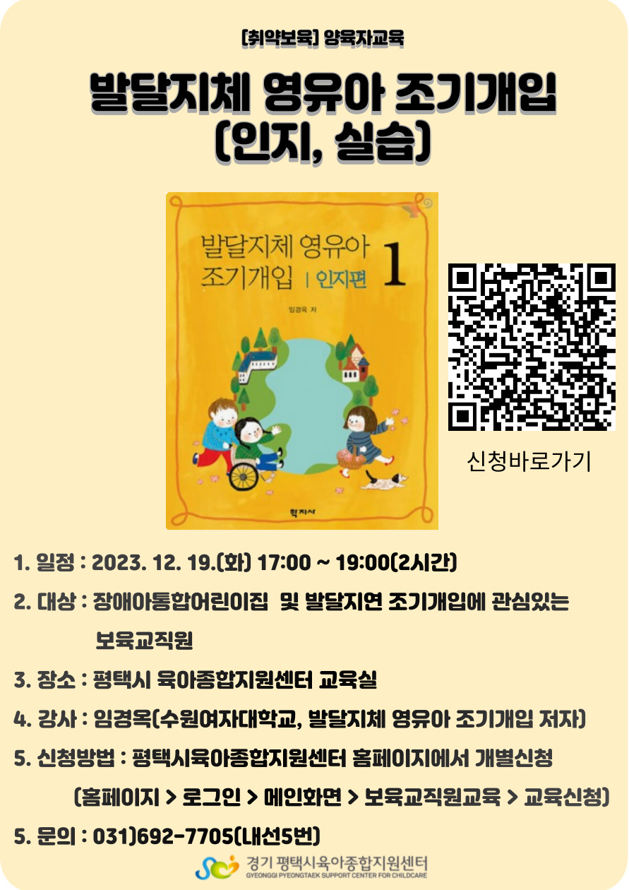 교육명 [취약보육] 발달지체 조기개입(인지, 실습) 교육 교육형태 오프라인 소규모