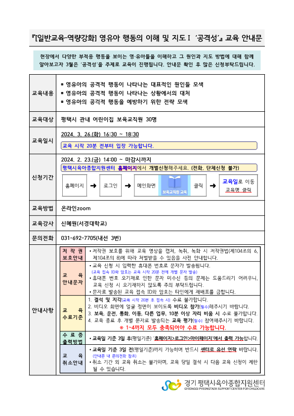 첨부파일 파일 [일반교육] 2024. 3. 26. 영유아 행동의 이해 및 지도 - 공격성 안내문_1.png