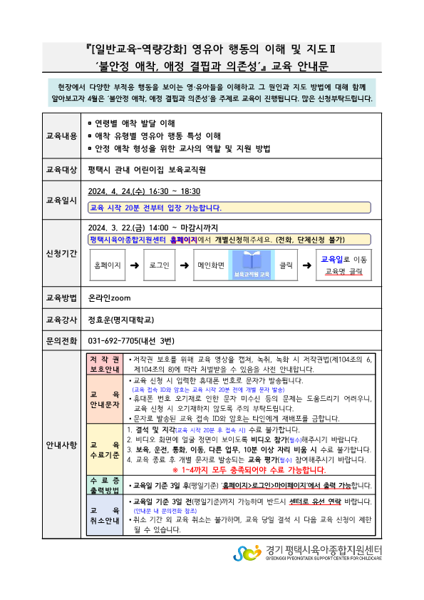 첨부파일 파일 [일반교육] 2024. 4. 24. 영유아 행동의 이해 및 지도 안내문.png