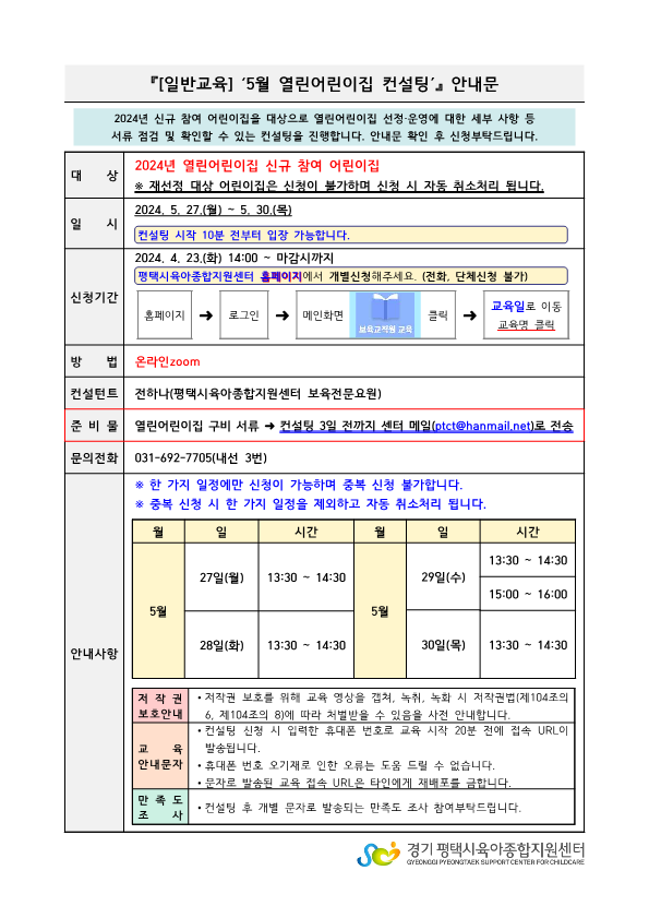 첨부파일 파일 [일반교육] 24. 5. 열린어린이집 컨설팅 안내문_1.png