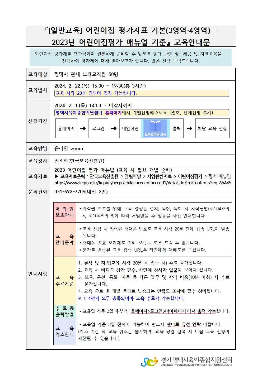 * 위 교육은 2023년 평가 대상 어린이집을 위한 교육 입니다.