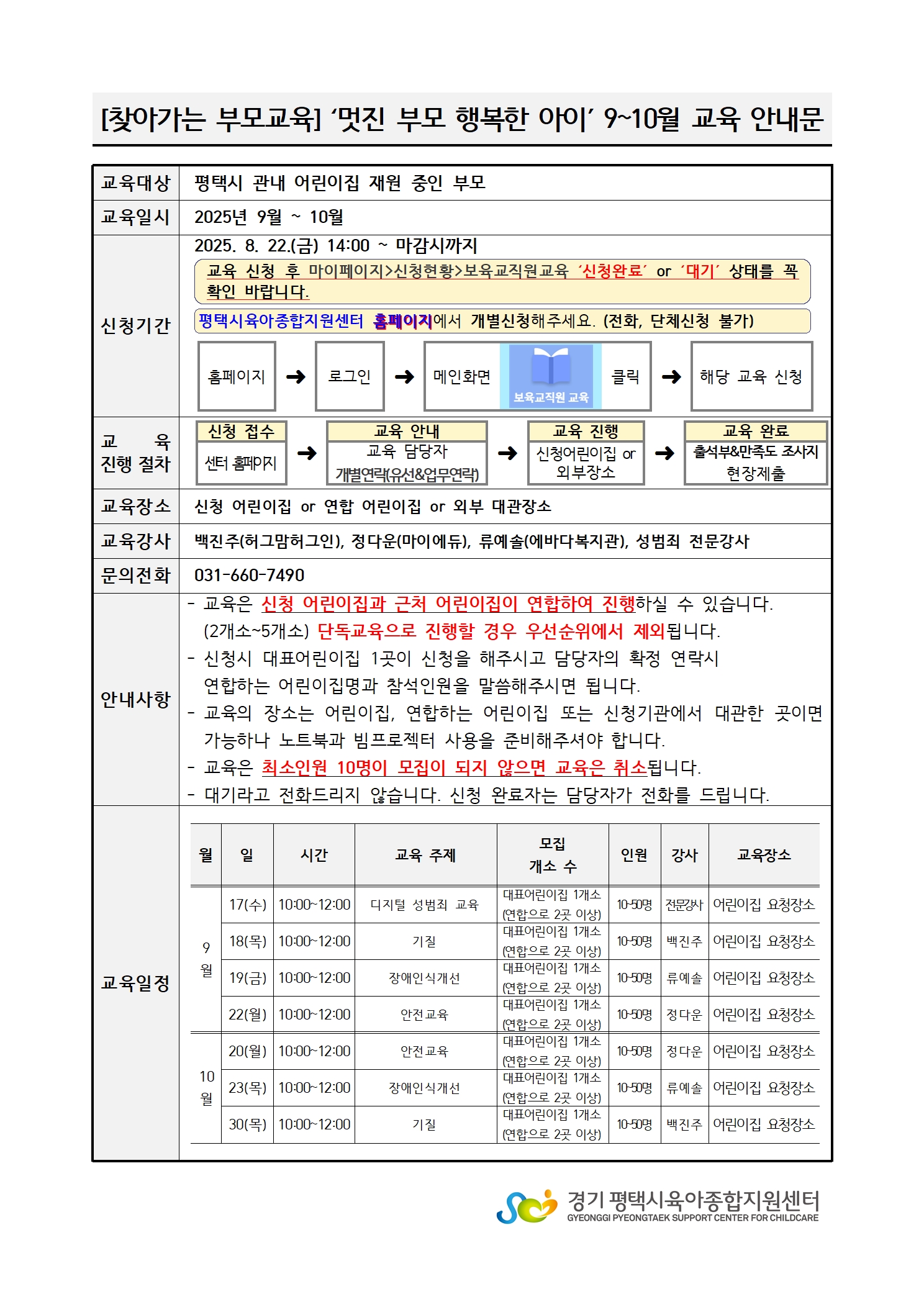 기타사항 - 진행되는 교육은 근처 어린이집과 연합하여 진행하실 수 있습니다.