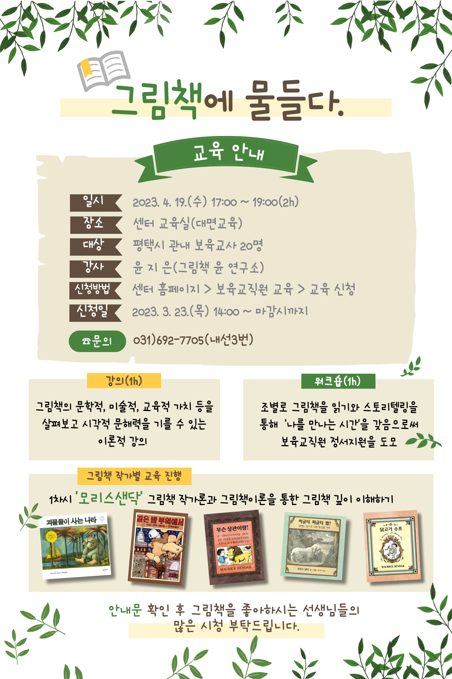 교육대상 평택시 관내 어린이집 보육교직원 강사명 윤지은(그림책 윤 연구소)