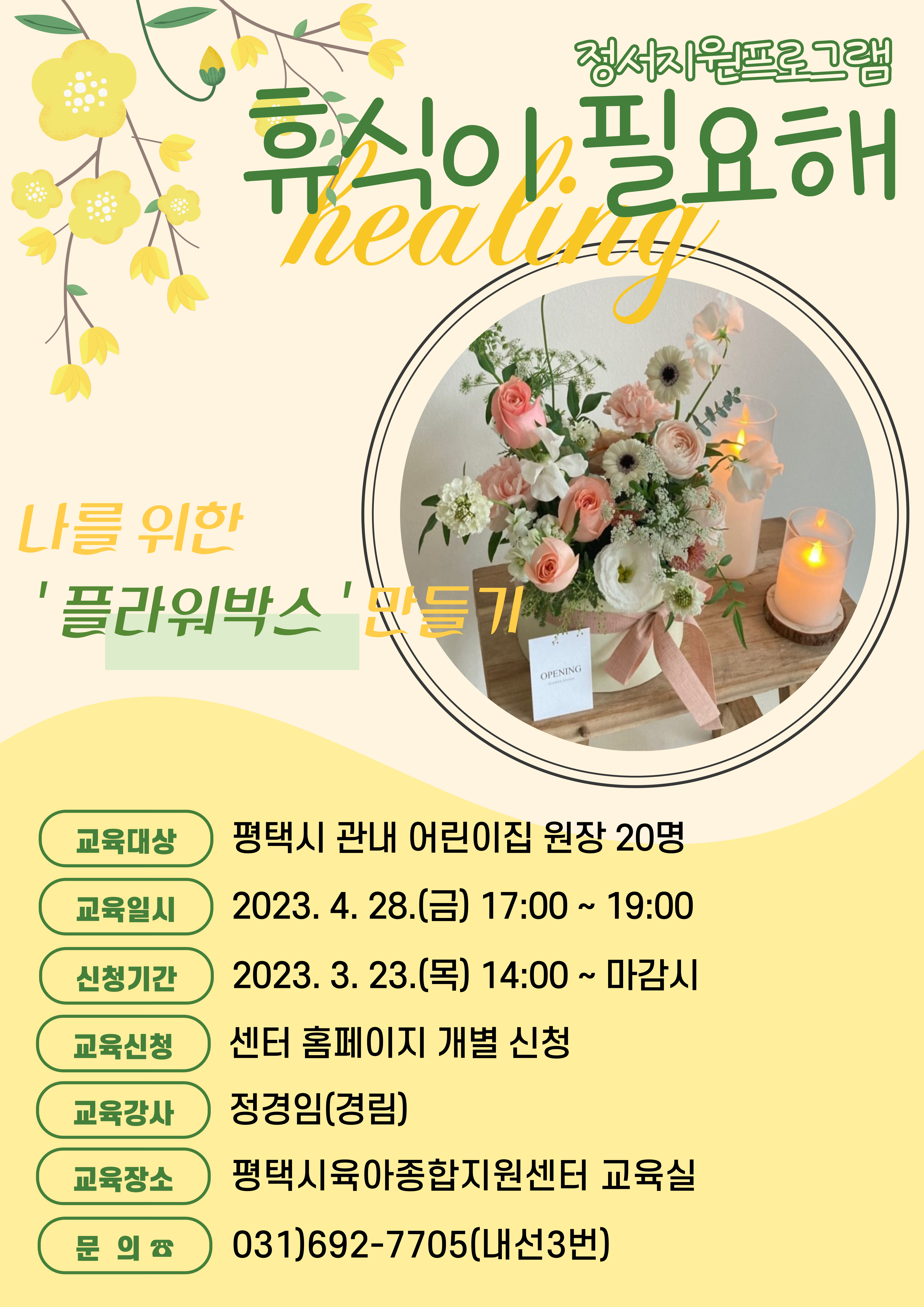 교육명 [특색-원장] 휴식이 필요해 '나를 위한 플라워박스 만들기' 교육형태 오프라인 소규모