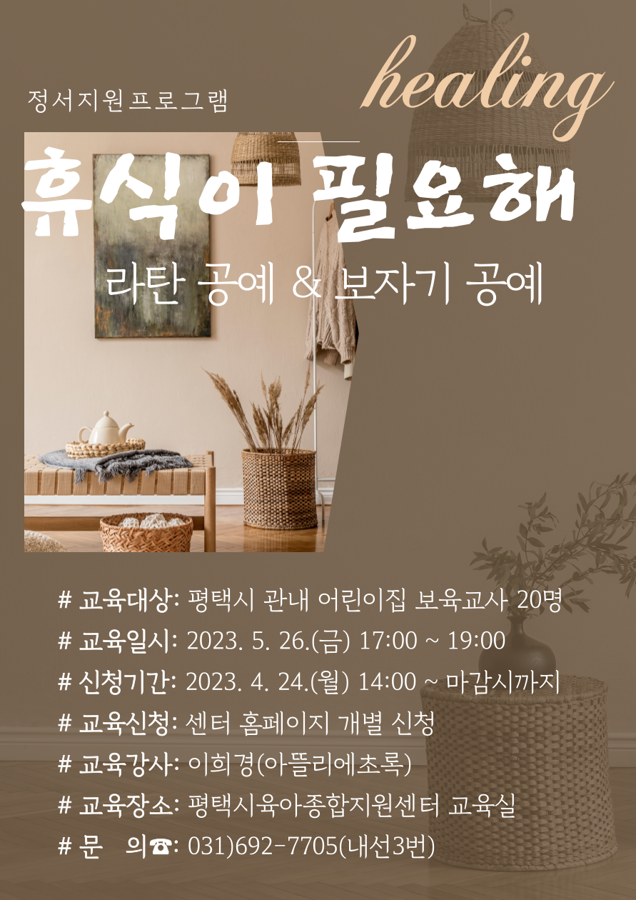 '휴식이 필요해'는 원장 대상으로 이루어질 예정입니다.