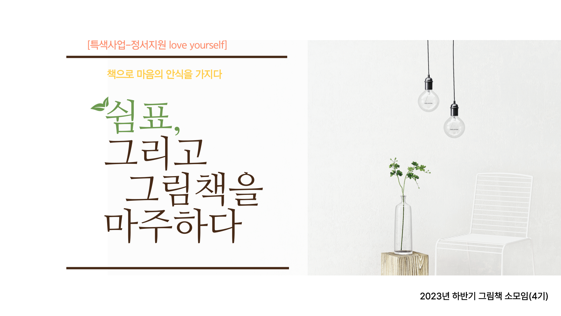 교육명 [특색사업] 쉼표, 그리고 그림책을 마주하다(4기) 교육형태 오프라인 소규모