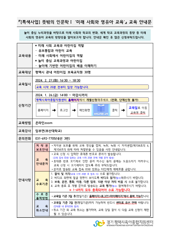 첨부파일 파일 [특색-뜻밖의 인문학1] 24. 2. 27. 미래 사회와 영유아 교육 안내문_1.png