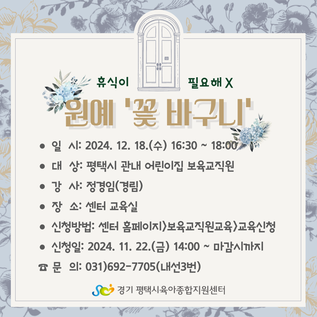 교육명 [특색사업] 휴식이 필요해Ⅹ '원예 - 꽃바구니' 교육형태 오프라인 소규모