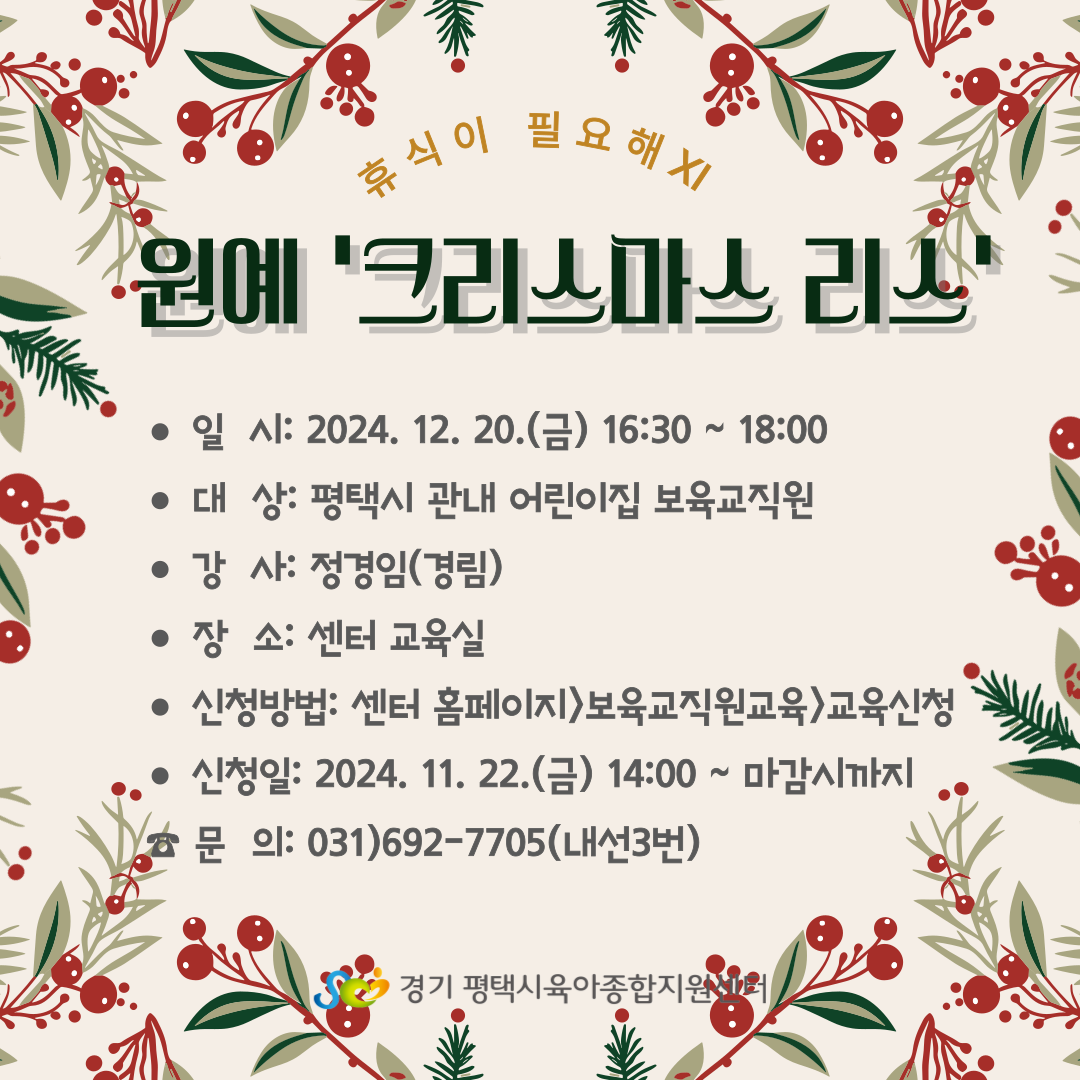 교육명 [특색사업] 휴식이 필요해ⅩⅠ '원예 - 크리스마스 리스' 교육형태 오프라인 소규모