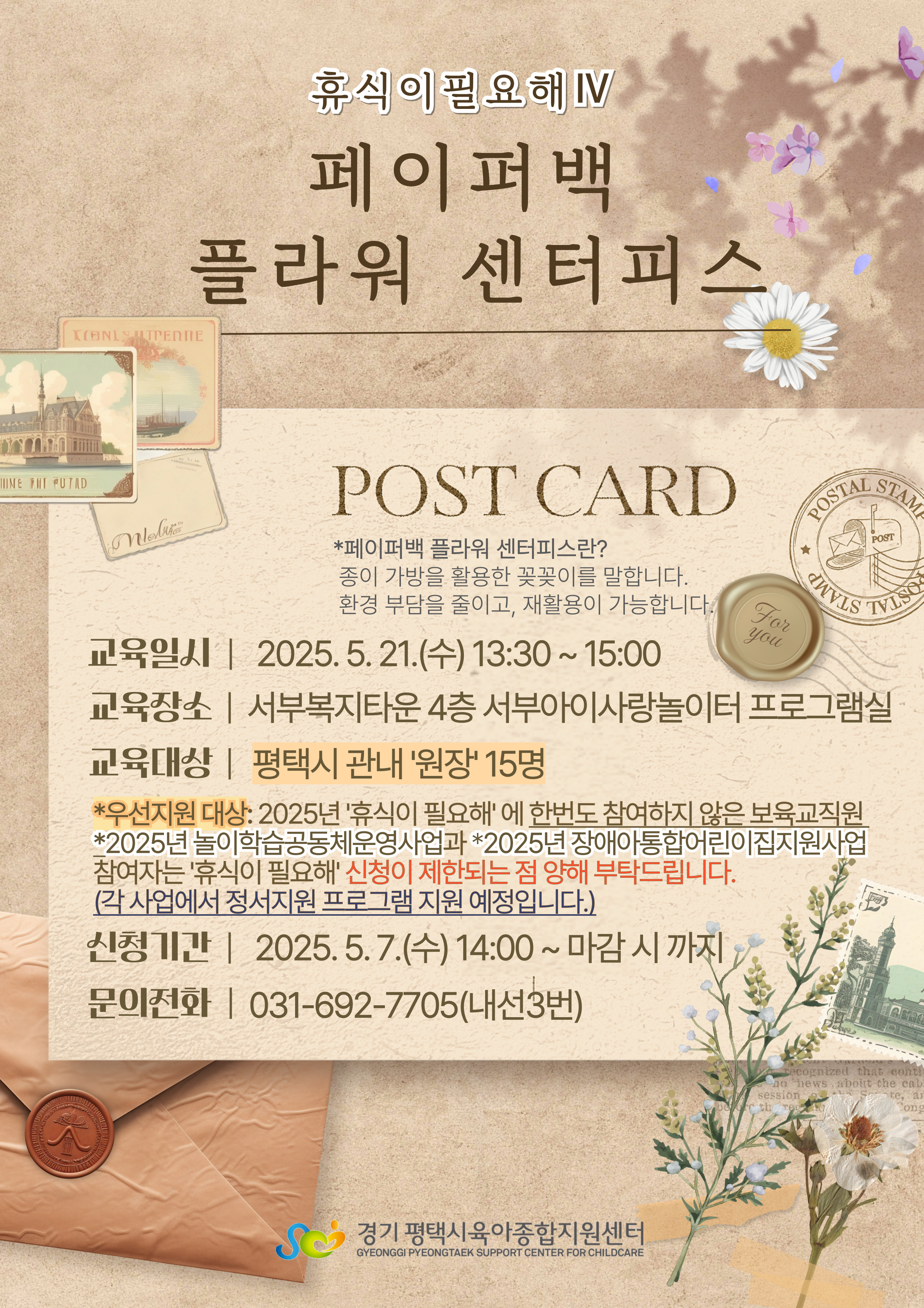 교육명 [특색사업] 휴식이 필요해Ⅳ ‘페이퍼백 플라워 센터피스’ ★원장 대상★ 교육형태 오프라인 소규모