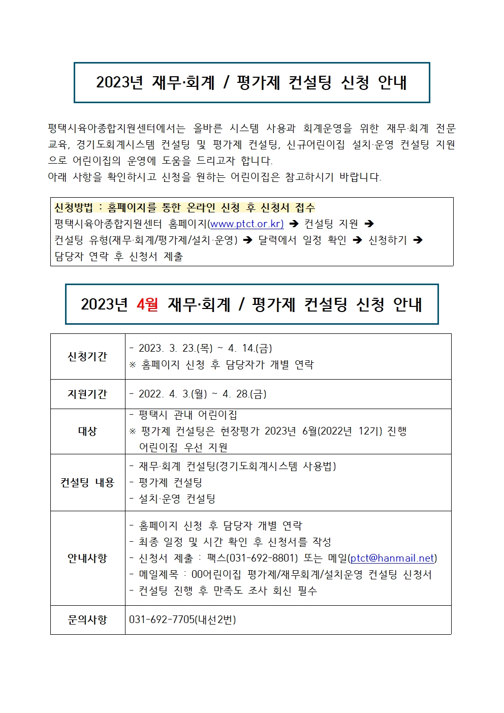 | 문의전화 | 031-692-7705(내선2번) | ||
