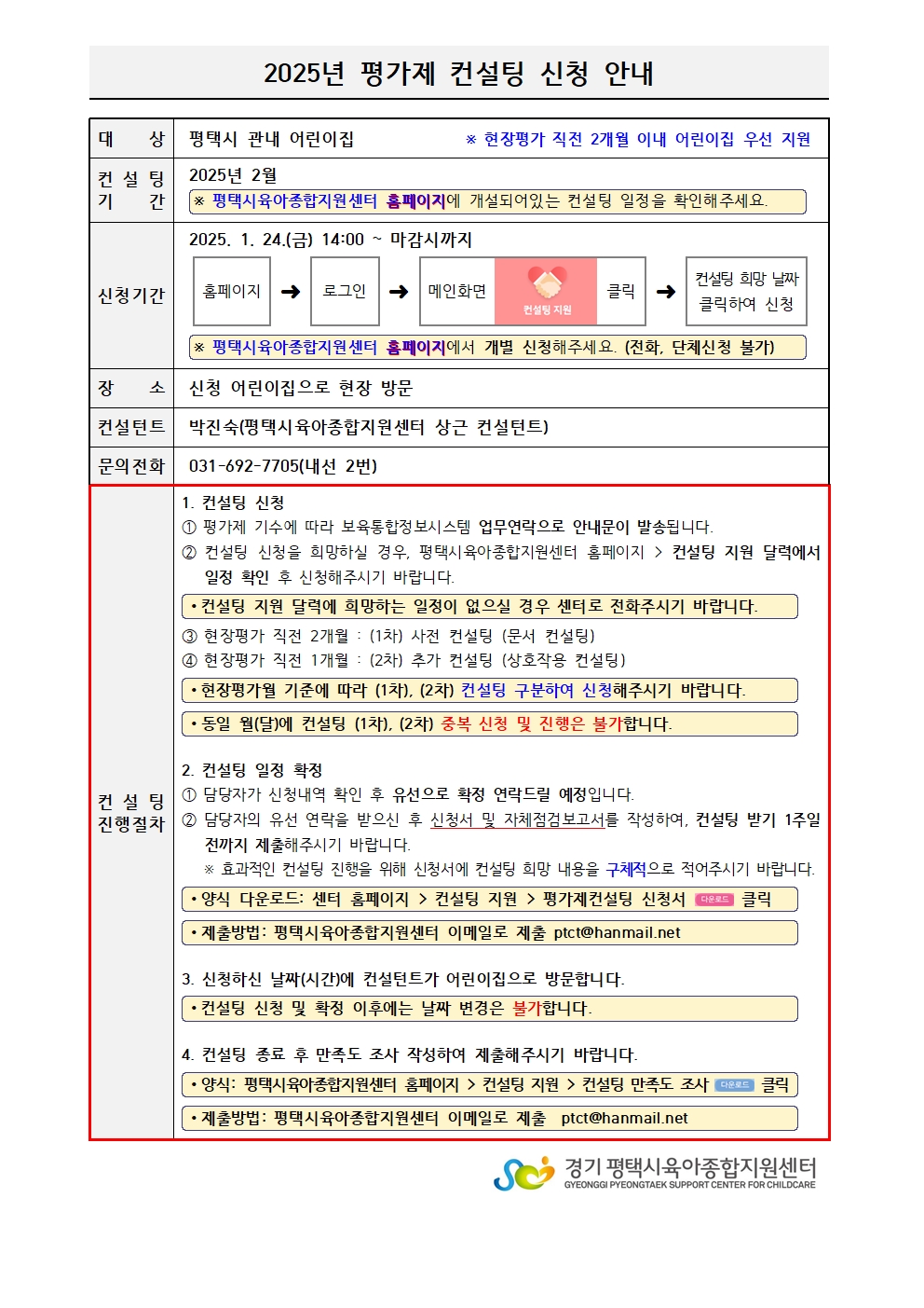 컨설팅 장소 해당 어린이집 컨설턴트 명 박진숙(평택시육아종합지원센터 )
