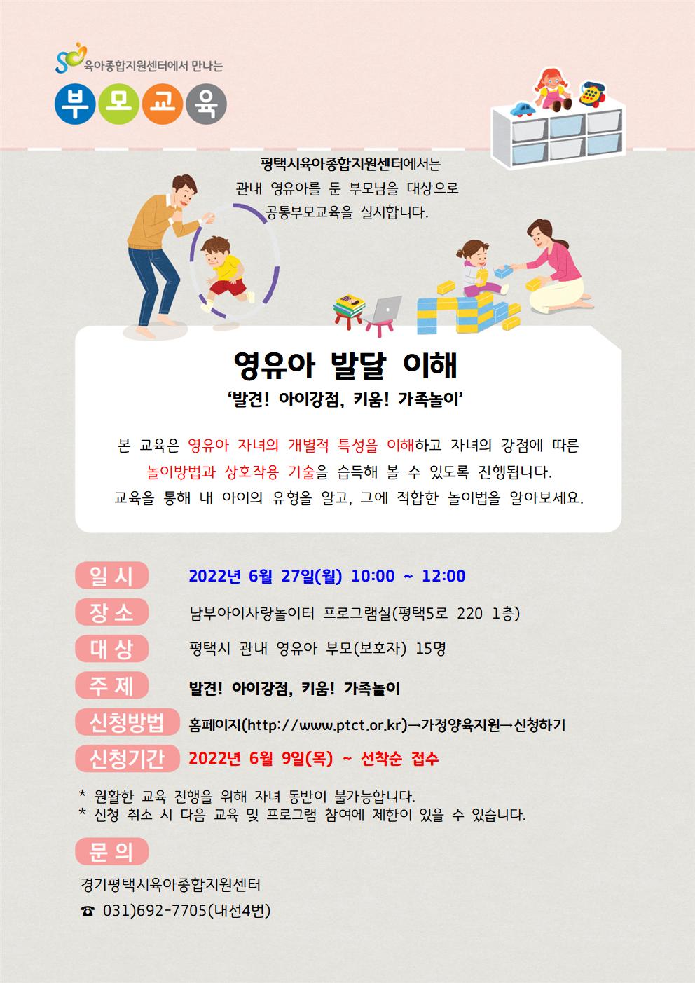 | 교육대상 | 보육교직원, 부모 | 교육장소 | 북부아이사랑놀이터 |
