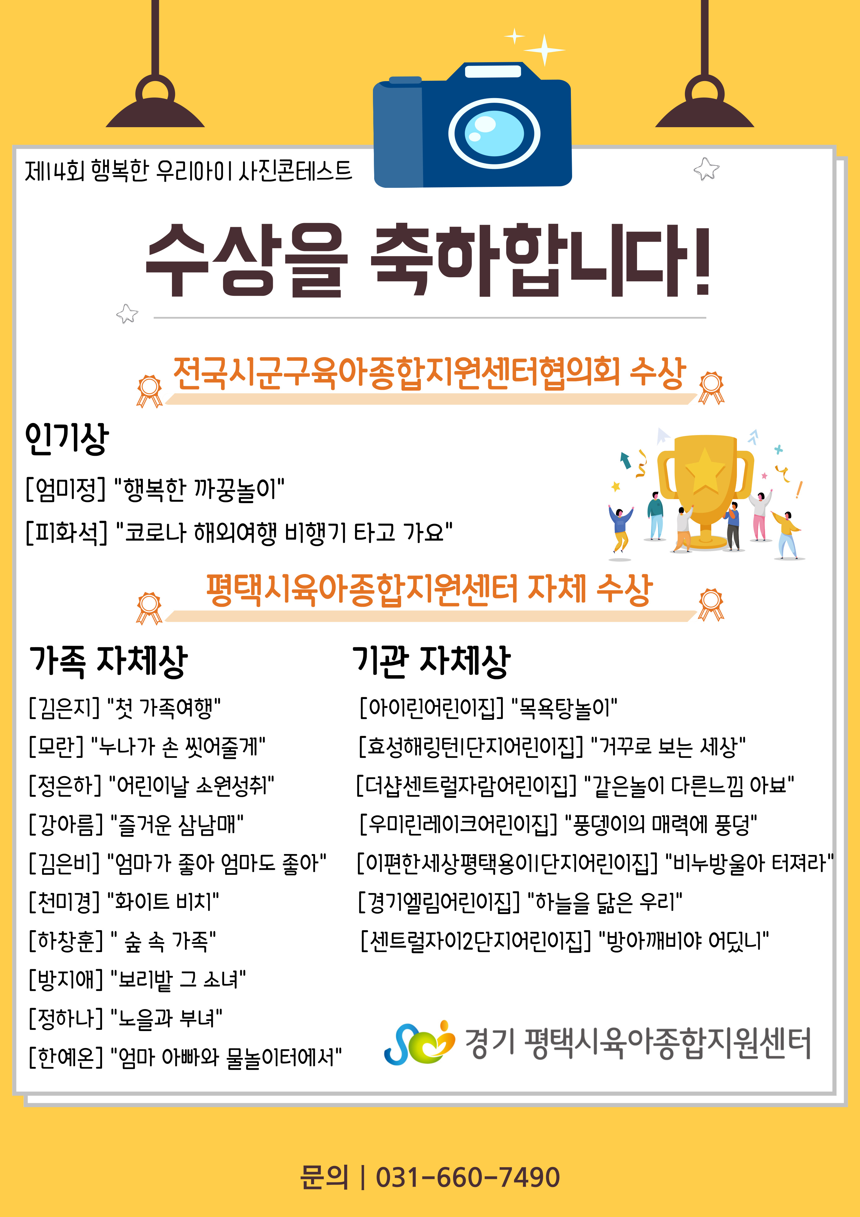 | 집에서도 놀(면서) 자(란다)! *온라인 부모교육을 수강하시고, 자녀와 놀이꾸러미로 더 재미있게 놀아보세요! - 신청대상 : 평택시 관내 영유아 자녀를 둔 부모 및 양육자 - 신청일 : 8월 31일(수) ~ 선착순 30명 - 배부일 : 9월 14일(수) 10:00 ~ 11:30 - 배부장소 : 서부아이사랑놀이터 소감문은 9월 7일(수) 오후 1:00까지 작성해주세요. 도착하지 않을 경우 대기자에게 순서가 돌아갑니다.