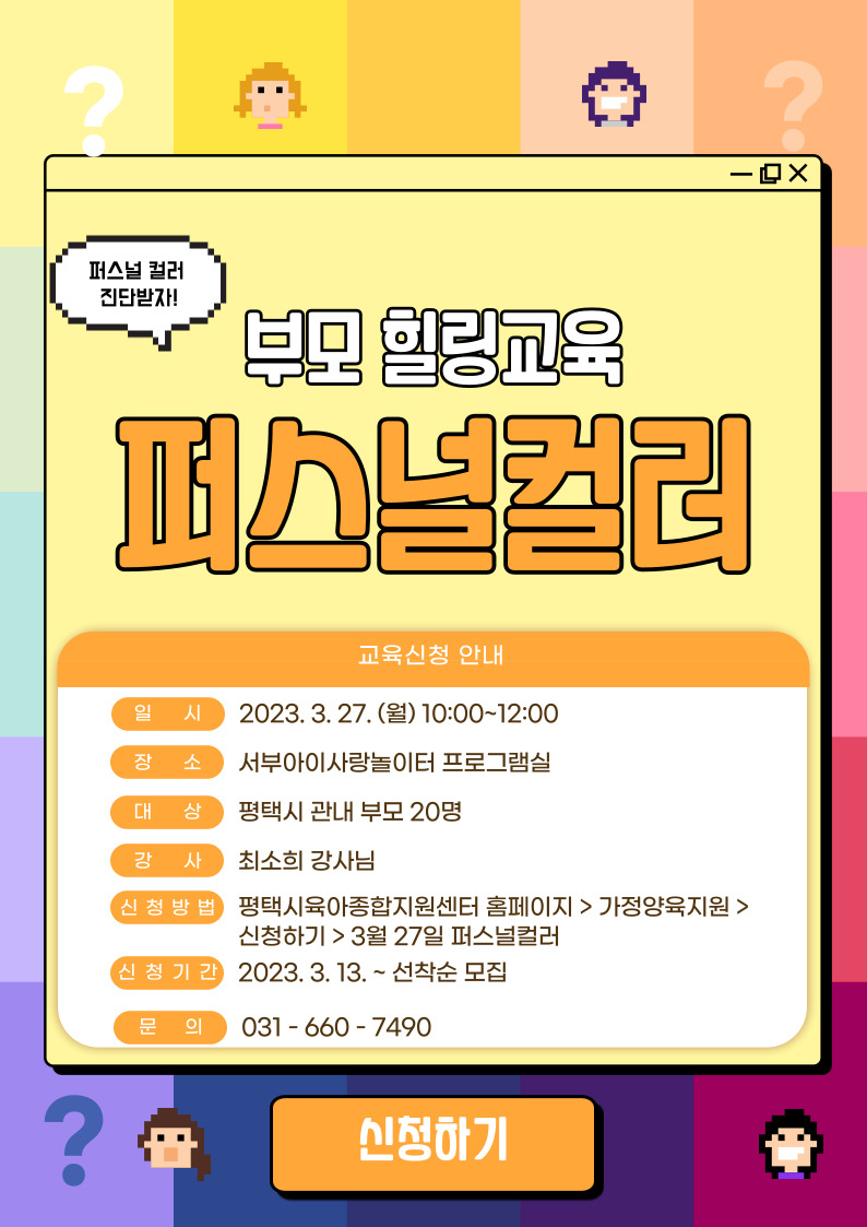 | 교육명 | 부모의 힐링타임(퍼스널컬러) | 교육형태 | 오프라인 소규모 |