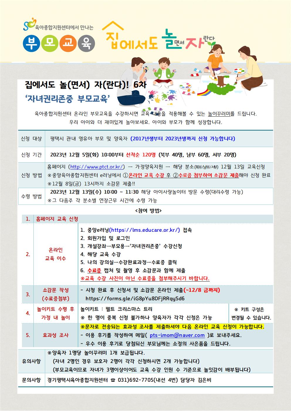 | 집에서도 놀(면서) 자(란다)! 6차 *온라인 부모교육을 수강하시고, 자녀와 놀이꾸러미로 더 재미있게 놀아보세요!