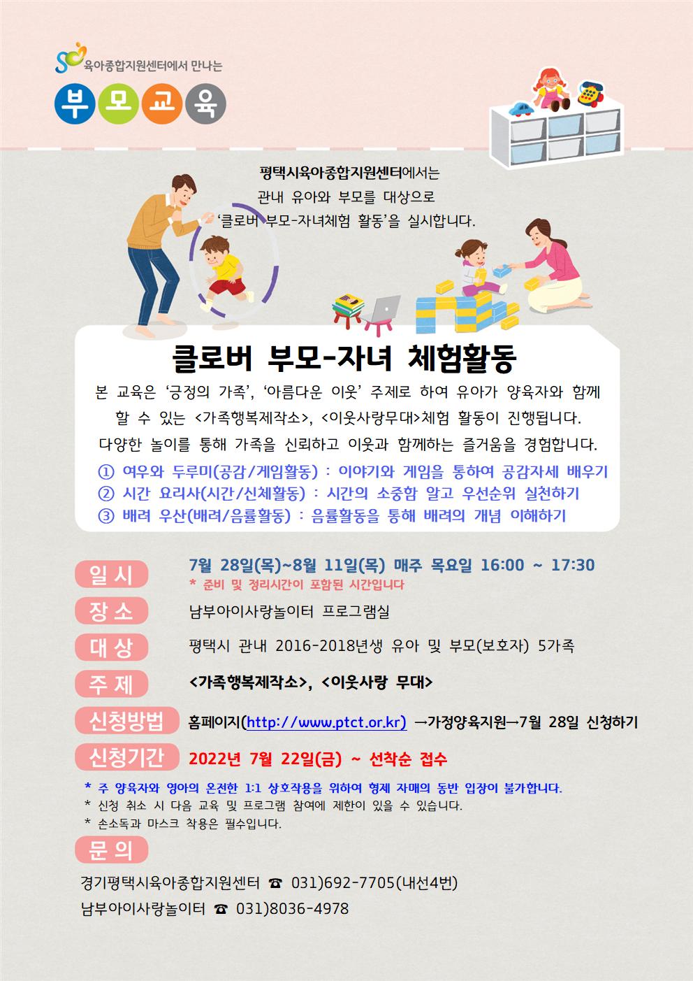 ☎문의: 평택시육아종합지원센터 부모교육 담당자(031-692-7705 내선4번)