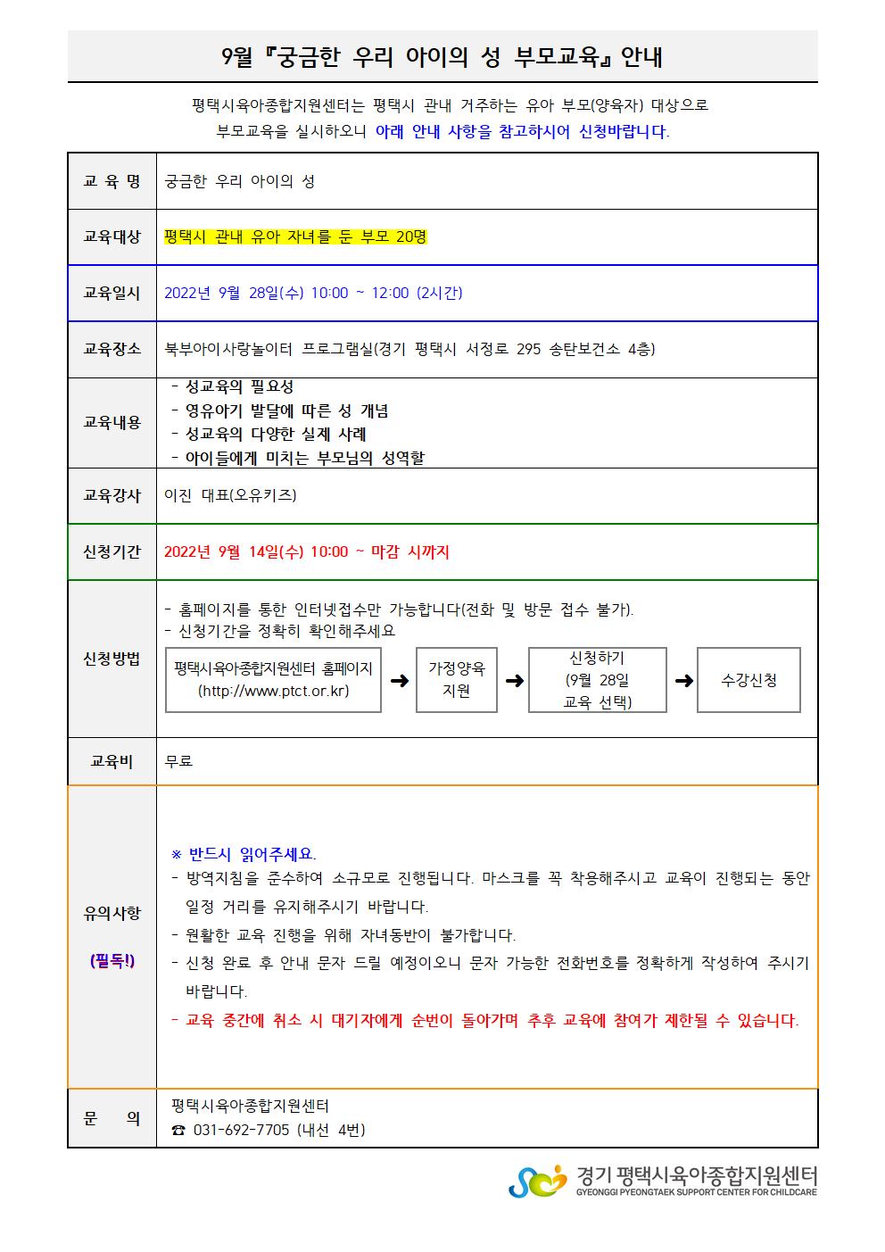 ☎문의: 평택시육아종합지원센터 부모교육 담당자(031-692-7705 내선4번) |